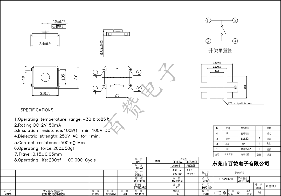 2.6*3*0.65H四腳帶點(diǎn)薄膜開關(guān)