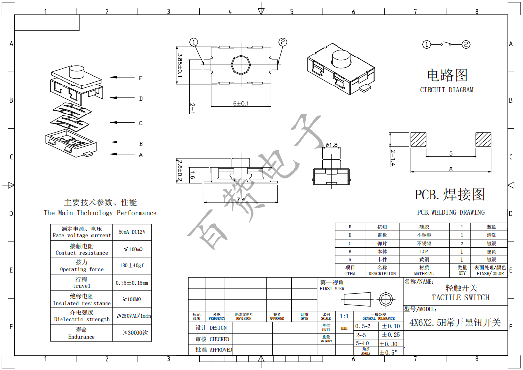 4*6*2.5H常開(kāi)黑鈕開(kāi)關(guān)